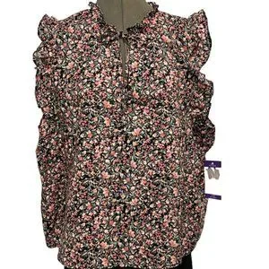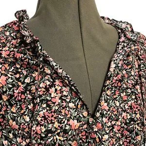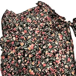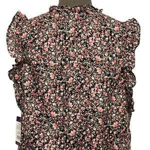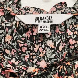 BB DAKOTA By STEVE MADDEN TOP Dark Floral Fluttery Cap Sleeve Top Features Split Neckline With Tie Closure NWT