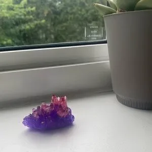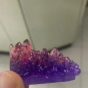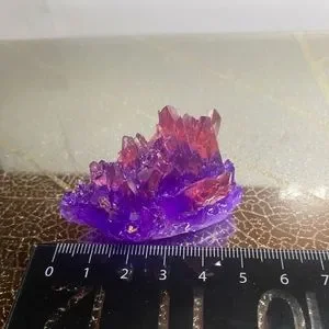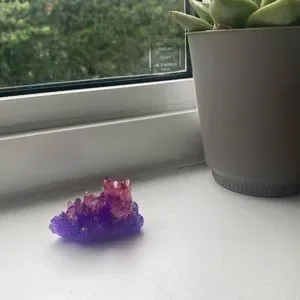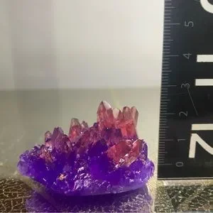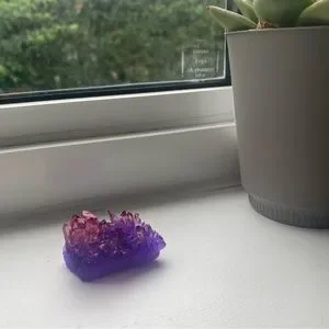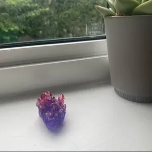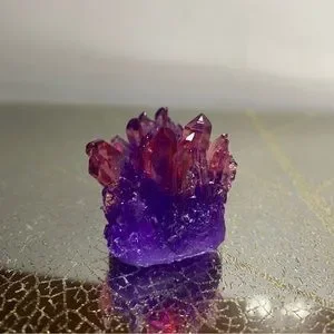 Small purple and pink crystal cluster decoration made out of poured resin.