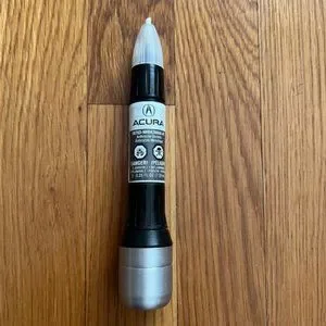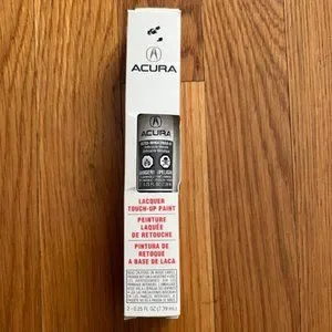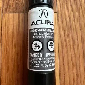 OEM Acura lacquer touch-up paint in anthracite metallic, 08703-NH643MAA-A1. Can be used as pen or brush on and includes clear topcoat with applicator. Only used once for a small chip less than .5 cm on a previously owned dark grey Acura. Easy to use and works well!