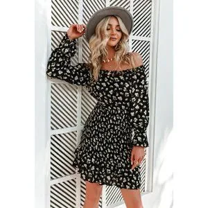 Ditsy Floral Off-Shoulder Flounce Sleeve Dress