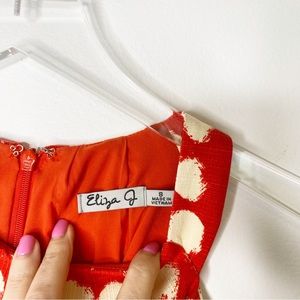 Eliza J Gold Belted Red Polka Dot Halter Pin Up Dress Size 8
