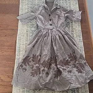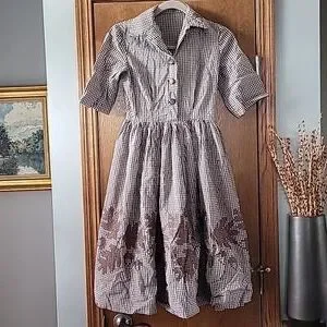 1950s Handmade Gingham and Embroidered Dress with button down front. Absolutely stunning, and in immaculate condition for age, measurements in pictures.