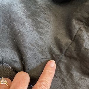 Fabric patches hand sewn on insides of ankles, in places with blue thread