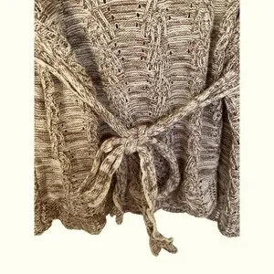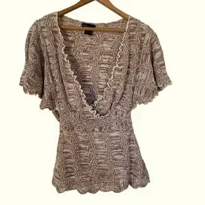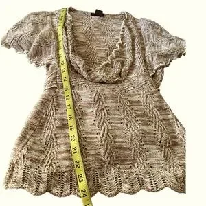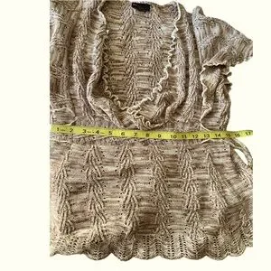Grace Elements Laguna Ivory tan cotton knit scallop hem sweater top sz s