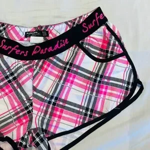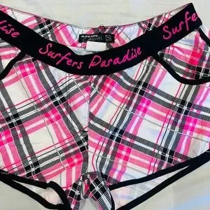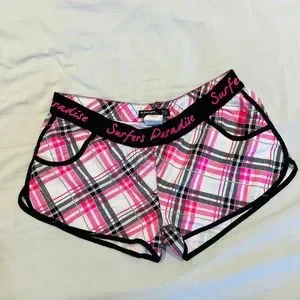 Pink and white chequered shorts