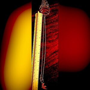 @luria I am adding a photo. The chain has about an 8” drop so a 16” chain that loops through a smaller chain linked to the top of the pendant.