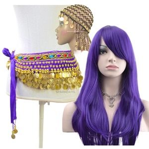 Belly Dancer Costume Purple Wig Jewel Coin Scarf Belt Festival Halloween Party
