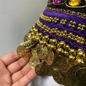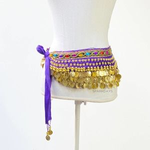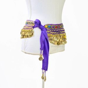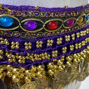 Belly Dancer Purple Jewel Coin Scarf Belt Mannequin is a small/medium for size reference. Some pilling or jewels missing