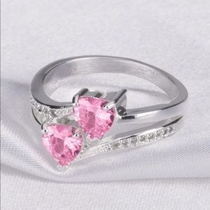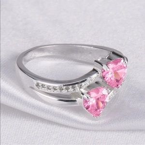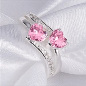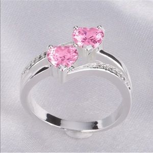 New Two Hearts 925 Silver Beautiful Pink Sapphire Ring