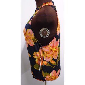 NWT CROSBY WOMENS SMOCKED HALTER TANK TOP NAVY HIBISCUS MEDIUM