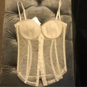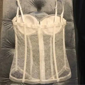 Beautiful La Perla white bustier/ corset. New with tags, never worn ( except when l tried it for pictures ) Adjustable and removable straps. Gorgeous lace detailing. Beautiful piece! Pristine condition. Size 36C but can fit 34B as well. I’m 34B in La Perla and that’s how it looks on me but still has some room inside cups and pretty comfortable/stretchy so 36C is definitely fine. Straight from Italy (bought it there) Made in Italy 🇮🇹