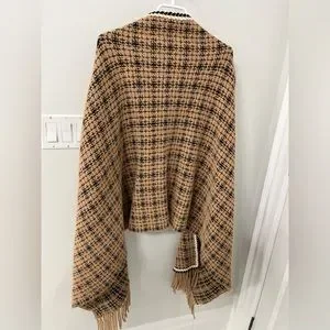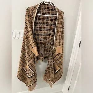 Tan and black wrap sweater/shrug with pockets perfect for fall