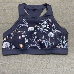 Bottom: floral background with solid fabric accents. One mesh section on back. No mesh on front for a modest look