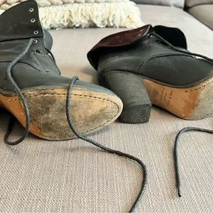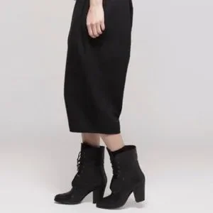 Wrinkled leather constructs a pair of Victorian-inspired Rag & Bone boots. Braided cords lace up the front. The shaft can be folded down to reveal a rich, contrast interior. Chunky stacked heel and leather sole.