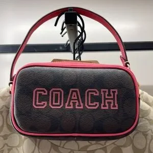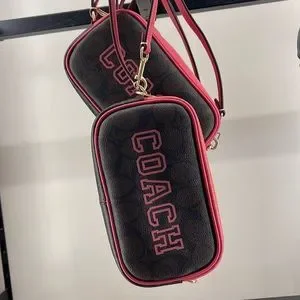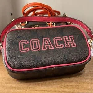 Coach Jamie Wristlet In Signature Canvas With Varsity Motif IM/Brown/Watermelon