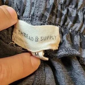Thread and Supply leopard print jogger lounge pants. Incredibly soft, black on charcoal grey. Nice, thick ties with chunky metals ends. Women's Size Medium.