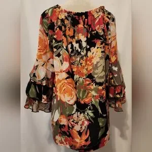 Ronnie Salloway floral boho flared bell sleeves Size L