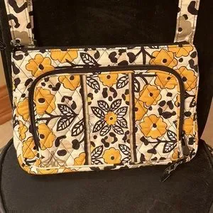 Brand new, no tags, Vera Bradley cross body. The front pocket is a built in wallet. The inside has a zipper pocket. The back has a huge pocket with a magnetic closure. The straps can be made into any length.