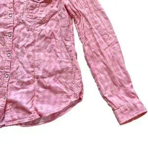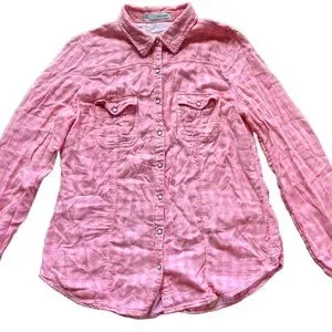 Beautiful pink and orange plaid checkered long sleeve button up top with pretty pearlized buttons down the front and on the cuffs. Soft and comfortable! Excellent condition. No flawsπ Cover photo & lighter color photos are the most accurate!
