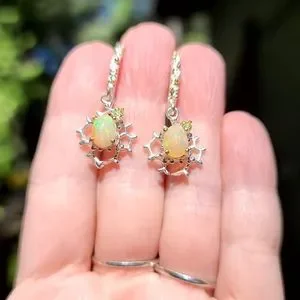 the stones as drops of honey. These Opals are close to 6k each with beautiful crisp little Peridot accent stones. These have the locking clasp style ear hook.