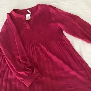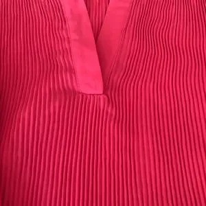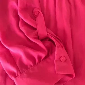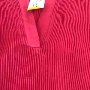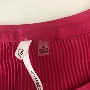 NY Collection......Women's 2XL beautiful Fuchsia blouse, cut on a Bias, has open neck, pleated in 2 gages, option to fold and button sleeves!
