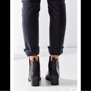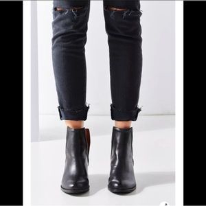 Leather ankle boots with cutout and wire in the seams to shape the opening.