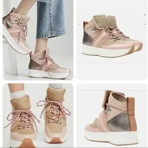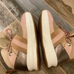 Wintery variation of Casey high-top sneaker with a comfortable rounded sole and multicolour laces. along the outsole add a feminine touch, while contrasting materials and the leather back tab enhance the sporty mood.