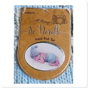 So’ Dorable Hand Knit Newborn Set Blue Gray Trim Size Newborn