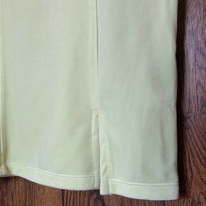Super soft velvet like material. There is a small slit on one side. Forever 21 size woman’s small. Very stretchy and has a second lining on the top half so it’s not see through on top! I never wore it because it was too tight, but if it fits right it shouldn’t be see through!