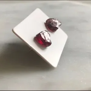 🆕 New Raw Garnet Crystal Stud Gemstone Earrings
