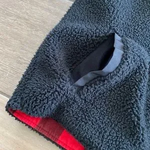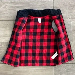 Boys Carters Black Fleece Vest Lined with Red/Black Buffalo Check, Full Zip front, side pockets