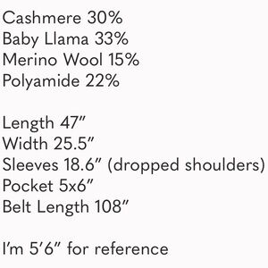 Fabric: 33% Llama , 30% cashmere , 22% polyamide , 15% merino wool.