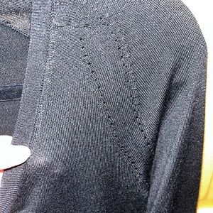 Good preowned condition has small mark on left sleeve see picture. Sweater is very light weight and slightly sheer. Has detailing down front center and shoulder armpit area.