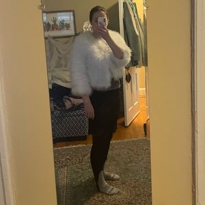 This is turkey feathers not faux fur. I have one just Ike this one very pretty!