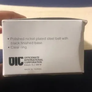 Polished nickel plated steel bell with black finished base . Clear ring . Check all pics for the measurements and details.