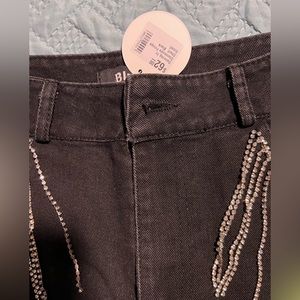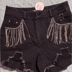 Black rhinestone high waisted shorts. Size small. Never worn. I’m a soze 4 and they fit perfectly but baggy on my legs. Really cute!! Just not my style :(