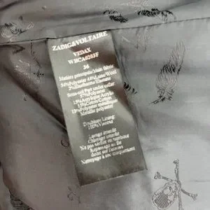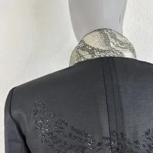 Zadig&Voltaire women’s black jacket, Italian collar, two buttons, embellished with a rhinestone “eagle” motif on the back. Popup metallic python collar.