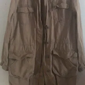 Size L Old Navy Tan Hooded Long Button Down Utility Jacket. Great condition! 100% Cotton