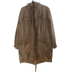 Old Navy Tan Hooded Long Button Down Utility Jacket