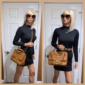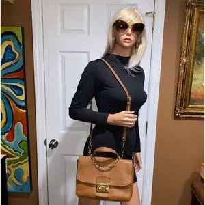 Authentic gently used Miu Miu 2 Way Brown Leather Bag. This beautiful 2 way bag is in very good condition. It features grained cowhide brown leather, gold tone hardware, front snap S lock closure, removable adjustable leather strap, interior gusseted pocket, interior zip pocket, flat pocket, 2 compartments, front & back logo, satin interior lining. This bag is very clean inside & out, minor fine hairline scratches on the hardware, light fading of the gold plating on the D rings but barely noticeable. The short high quality non branded gold chain was added. Normal sign of use. Comes with care card & authenticity card. Let me know if you have any questions.