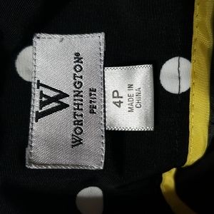 Worthington petite black polka dot skirt, black and white, side zipper, lined and has 2 pockets, excellent condition, size 4P