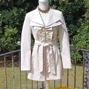 Kenar- Cream Belted Water Resistant Adorable Unique Trench Coat.