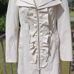 Kenar - Cream Multi Button Ruffled, Belted,Lined and Water Resist Jacket WS