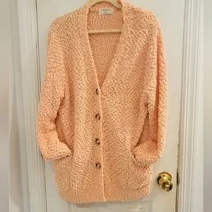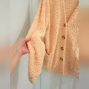 Zenana long sleeve popcorn cardigan with front pockets. 78% polyester 22% acrylic. Lightweight and soft. New never worn. Light peachy pink color. Womens size XL. Fits true to size. Photos are different colors same cardigan.