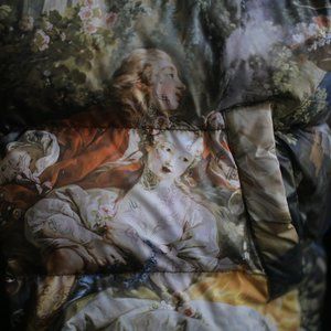 Current Mood Da Vinci's Demons Puffer Jacket cuz you're a masterpiece, bb! Heauxs are gonna have to study your beauty for ages when you wear this long sleeve puffer jacket with a high collar, front zip closure, and a painting print all over.