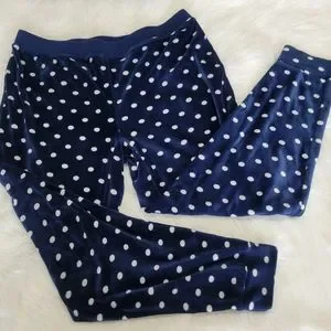 Jenni Intimates Polka Dot Velour Lounge Wear Set Hoodie & Pant Set L EUC Navy