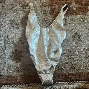 GOOD AMERICAN METALLIC LAYOUT SWIMSUIT ONE PIECE SILVER SIZE SMALL