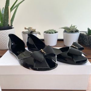 New As✨ Salvatore Ferragamo Jelly Flats - Authentic❣️Peep toe -signature bow🖤