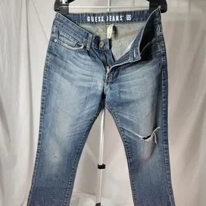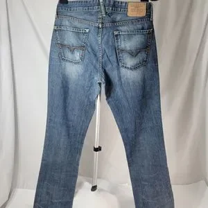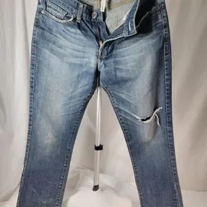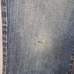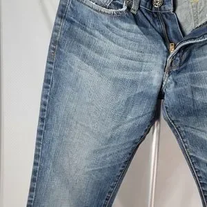 Straight leg, great condition with a fashionable distressed look and feel. Please see pictures showing a few spots which give it an even more distressed look.