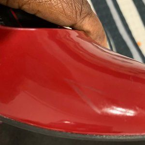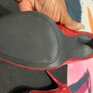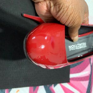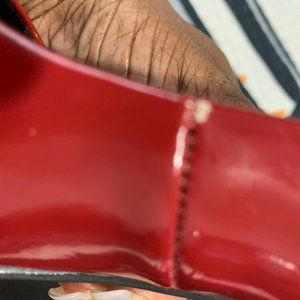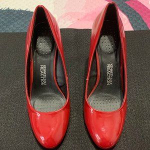 Kenneth Cole Reaction "Socially" SZ 7.5M Pumps Red Wine color. There is some peeling on seam on both shoes. Minor scuffs on patent leather (see photos)